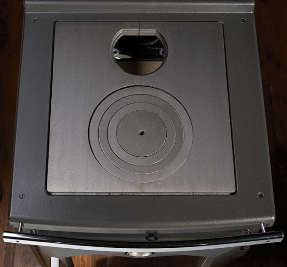 Revêtement extérieur en fonte vitrifiée • Foyer en fonte Nordiker • Grille foyer à fonte réglable • Porte foyer avec double vitrage • Cadre, plaque et cercles en fonte • Grand tiroir à bois