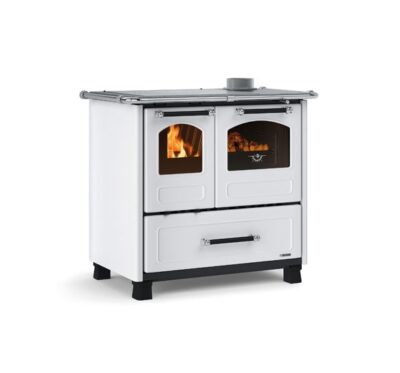 Revêtement externe en fonte emaillée • Porte anti-incendie panoramique avec verre double • Four Émaillé de 41 litres avec porte vitrée double • Cadre en fonte vitrifié (très solide) • Plaque de cuisson avec cercles de fonte polie (très solides) • Facade en fonte G20 • Foyer en fonte G20 (très solide)